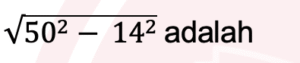 Kerjakan sesuai dengan waktu yang telah ditentukan Kuantitatif - Tryout PAPs 001 Perhatikan instruksi dibawah ini dengan seksama Jumlah soal dalam subtest ini adalah 40 soal dengan durasi waktu perngerjaan 40 menit Diperbolehkan submit jawaban jika sudah selesai tapi waktu masih tersisa Siapkan tempat dan suasana yang mirip dengan tes yang sebenarnya agar terbiasa Jangan menggunakan bantuan Baca instruksi soal yang telah diberikan dengan seksama Silahkan masukan password yang telah diberikan Isikan data diri anda dengan benar! 1 / 40 1. 1664, 832, 416, 208 112 116 108 104 102 2 / 40 2. 2,3,6,7,14,15,... 14,6 28,29 9,3 30,31 16,32 3 / 40 3. 2,4,2,4,6,4,6,8,6,8,10,8 6 7 8 9 10 4 / 40 4. 300,800,300,600,1100,600,900 1400,600 900,1100 1400,900 1100,800 800,900 5 / 40 5. 25, 28, 33, 36, 41, ... 42, 47 43, 48 44, 49 45, 50 45, 51 6 / 40 6. 31, 55, 61, 34, 56, 59, 37, 57, 57, 40, 58, ... 53 55 57 58 60 7 / 40 7. 1,1,2,3,5,8, ... 12,17 13,21 14,21 15,28 17,21 8 / 40 8. 1,9,2,3,9,4,5,9, ... 3 5 6 9 7 9 / 40 9. ..., ..., 5, 10, 8, 15, 11, 20, 14 5,15 2,5 24,28 15,20 14,28 10 / 40 10. 94, 88, 82, 76, 70, 64, ..., .... 52,60 58,52 56,50 70,68 60,54 11 / 40 11. 1,3,5,7,... 6 8 9 10 11 12 / 40 12. 1,3,9,27, ... 36 45 63 72 81 13 / 40 13. 4,9,16,25, ... 36 29 49 45 64 14 / 40 14. 1.024, 512, 256, ... , 64, 32 128 124 80 192 16 15 / 40 15. 1,1,2,3,5,8,13,... 20 21 22 23 24 16 / 40 16. Umur Rani saat ini tiga kali umur Lia. Sepuluh tahun yang akan datang perbandingan umur mereka akan menjadi 7 : 3 Berapakah umur Rani sekarang? 21 tahun 30 tahun 40 tahun 50 tahun 60 tahun 17 / 40 17. Keluarga Pak Budi malam ini akan makan roti dengan ukuran yang cukup besar. Anggota keluarga Pak Budi ada 6 orang (termasuk Pak Budi), 4 orang masing-masing akan mendapatkan 2 potong dan 2 orang yang lain akan mendapatkan masing-masing 4 potong karena belum makan siang. Jika jumlah potongan semuanya adalah 28 potong dan pada besok pagi harinya setiap anggota keluarga akan memakan potong kue dengan jumlah yang sama, berapa potong yang diperoleh oleh masing-masing anggota keluarga besok pagi? 2 3 4 5 6 18 / 40 18. Anisa hari ini berencana akan mudik pulang kampung dari Jakarta ke Bandung sejauh 45 km mengendarai mobil dengan kecepatan 25 m/s. Berapa lama dia akan sampai di Bandung? 10 menit 20 menit 30 menit 40 menit 60 menit 19 / 40 19. Bono dapat memakan seporsi cake dalam waktu 3 menit dan Cika dapat memakan seporsi kue yang sama dalam waktu 6 menit. Jika mereka berdua secara bersamaan makan satu kue, berapa lama kue tersebut akan habis? 1/2 menit 1 menit 2 menit 3 menit 4 menit 20 / 40 20. Dalam sebuah tes yang terdiri 5 tahap diikuti oleh 100 orang, pada tahap pertama 80 peserta lolos. Setiap tahap jumlah peserta yang tidak lolos sama. Berapa orang yang lolos sampai tahap akhir 0 10 20 30 40 21 / 40 21. Sergio akan menjual HP miliknya dengan harga 2.750.000 Dari Harga jual HP tersebut dia sudah memperoleh keuntungan sebesar 10%. Berapa Harga beli HP Sergio? 2.000.000 2.500.000 2.250.000 2.150.000 2.050.000 22 / 40 22. Sebuah bank memberikan bunga pokok sebesar 4,5% pertiga bulan. Santi menabung di bank tersebut senilai 600.000 dan tabungan tersebut tidak di utak atik selama 12 bulan. Berapa jumlah bunga dari tabungan santi di 9 bulan? 2.700 27.000 81.000 81.650 86.000 23 / 40 23. Pembangunan taman bermain dikerjakan oleh 20 orang yang direncanakan selesai dalam waktu 20 hari. Setelah 5 hari bekerja, proyek dihentikan karena adanya wabah COVID-19 selama 7 hari. Berapa tambahan pekerja agar proyek selesai tepat waktu? 13 12 10 17 18 24 / 40 24. Caca Handoko mudik lebaran dengan naik sepeda motor menempuh jarak 240 km. Pada 1/3 perjalanannya, Caca Handoko berjalan dengan kecepatan 50 km/jam. Setelah itu, ia meningkatkan kecepatannya sebesar 60%. Jika ia berangkat pukul 06.30, maka Caca Handoko akan sampai pada pukul berapa? 10.06 10.12 09.42 11.18 09.30 25 / 40 25. Seorang pekerja dibayar Rp800/jam. Ia bekerja dari pukul 08.00-16.00 ia akan mendapat tamabahn 50% /jam jika bekerja melampaui pukul 16.00. Jika ia memperoleh Rp8.000 pada hari itu, pukul berapa ia pulang? 16.20 16.40 17.00 17.20 17.40 26 / 40 26. Jika x adalah jumlah bilangan genap negatif antara -30 sampai -1 sedangkan y adalah jumlah bilangan ganjil negatif antara -30 sampai -1, maka ... x lebih dari y x kurang dari y x = y 2x = 3y Hubungan x dan y tidak dapat ditentukan 27 / 40 27. x adalah rata-rata bilangan prima antara 6 sampai 12 dan y adalah rata-rata bilangan prima antara 15 sampai 18 maka x lebih dari y x = 2y - 1 x = y 2x = y y = 2x-1 28 / 40 28. Question x kurang dari z = y x = z kurang dari y x kurang dari y kurang dari z x = y lebih dari z x = y = z 29 / 40 29. 60% dari 0,333 adalah 0,1 0,2 0,4 0,6 0,3 30 / 40 30. Question 8 16 32 48 64 31 / 40 31. 0,5 x 25 + 0,5 x 25% = 12,255 12,625 13,255 13,625 6,625 32 / 40 32. 3 adalah berapa persenya 20? 66% 73% 12% 15% 17% 33 / 40 33. 1,036/0,04 = 258,34 238,03 25,90 15,99 108,33 34 / 40 34. Berapakah 33% dari 163 5379 5,37 543 54,33 53,79 35 / 40 35. Question A lebih dari B A kurang dari B A = B Hubungan A dan B tidak dapat ditentukan 36 / 40 36. A = harga fotokopi 5 buku 150 halaman Rp. 125/halaman B = harga fotokopi 3 buku 250 halaman Rp. 125/halaman A lebih dari B A kurang dari B A = B Hubungan A dan B tidak dapat ditentukan 37 / 40 37. Question 76 86 90 92 94 38 / 40 38. Question 49 48 57 78 119 39 / 40 39. Question 40 60 70 80 40 / 40 40. Question 110 117,5 125 127,5 Your score is 0%