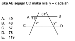 26. Jika x adalah jumlah bilangan genap negatif antara -30 sampai -1 sedangkan y adalah jumlah bilangan ganjil negatif antara -30 sampai -1, maka ...