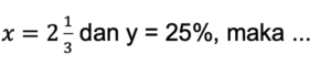 20) Jika p% dari 80 sama dengan 24 maka nilai p adalah ...